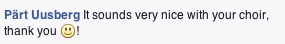 Pärt Uusberg, de jonge componist uit Estland, van wie wij twee stukken zongen, waardeerde de wijze waarop wij met zijn ‘Muusika’ het concert afsloten. Hij beluisterde het via video op Facebook.